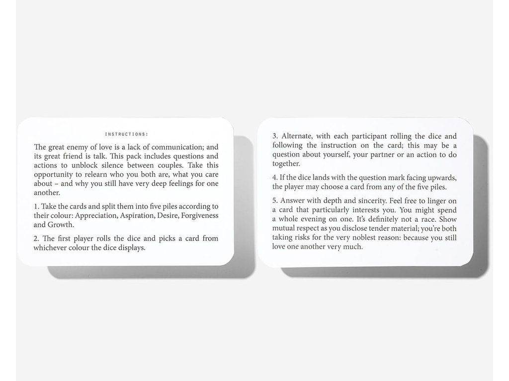We tend to chat all the time with our partners, but often not about what really counts - the sort of topics that clear the air, that reintroduce a spirit of fun, that draw us together, that make us remember what is really special about being part of a couple.