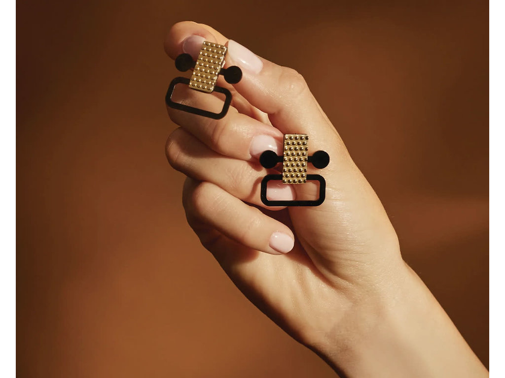 material: two earrings in steel, coated with hypoallergen PVD gold