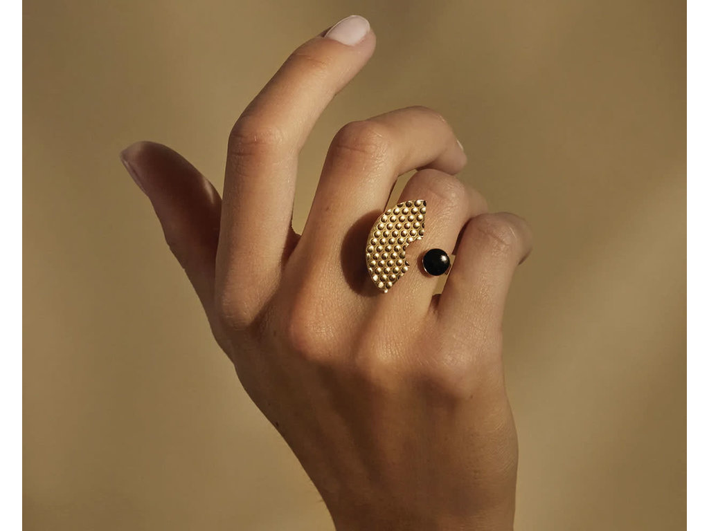 Create an accountmaterial: ring in steel, coated with hypoallergen PVD gold