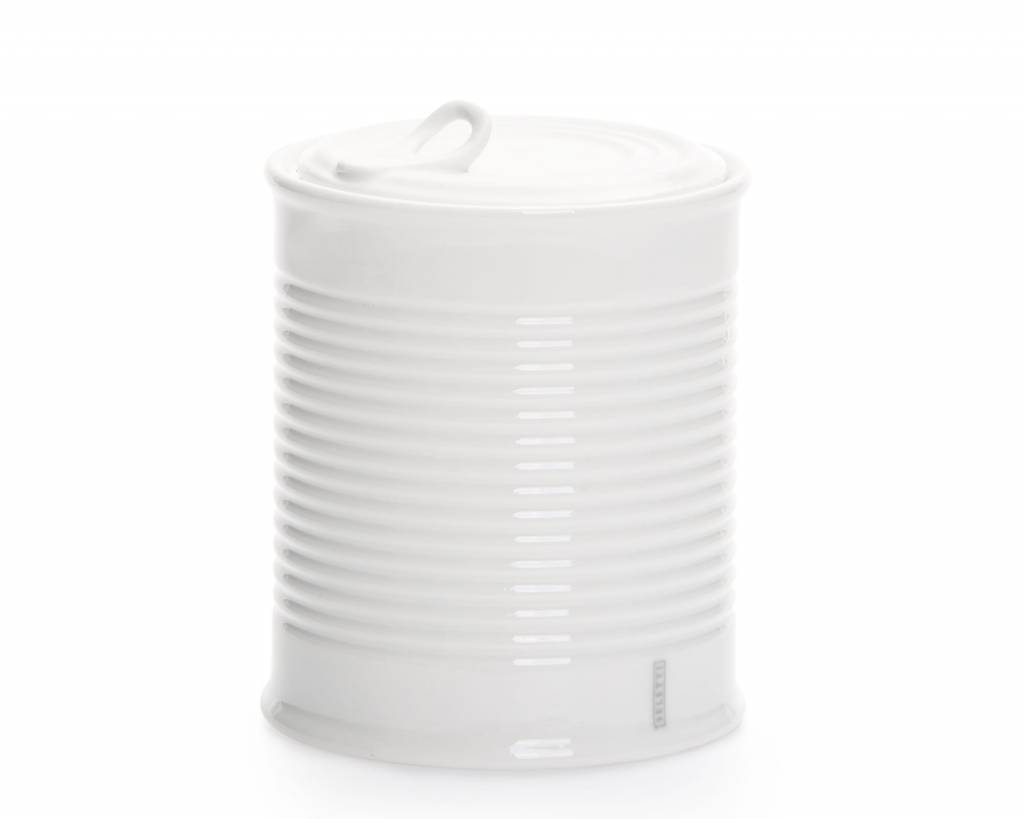 estetico quotidiano is the line of containers for food and beverages faithfully reproducing the shapes of disposable containers in durable materials, such as porcelain and borosilicate glass. the cans include a porcelain lid too.