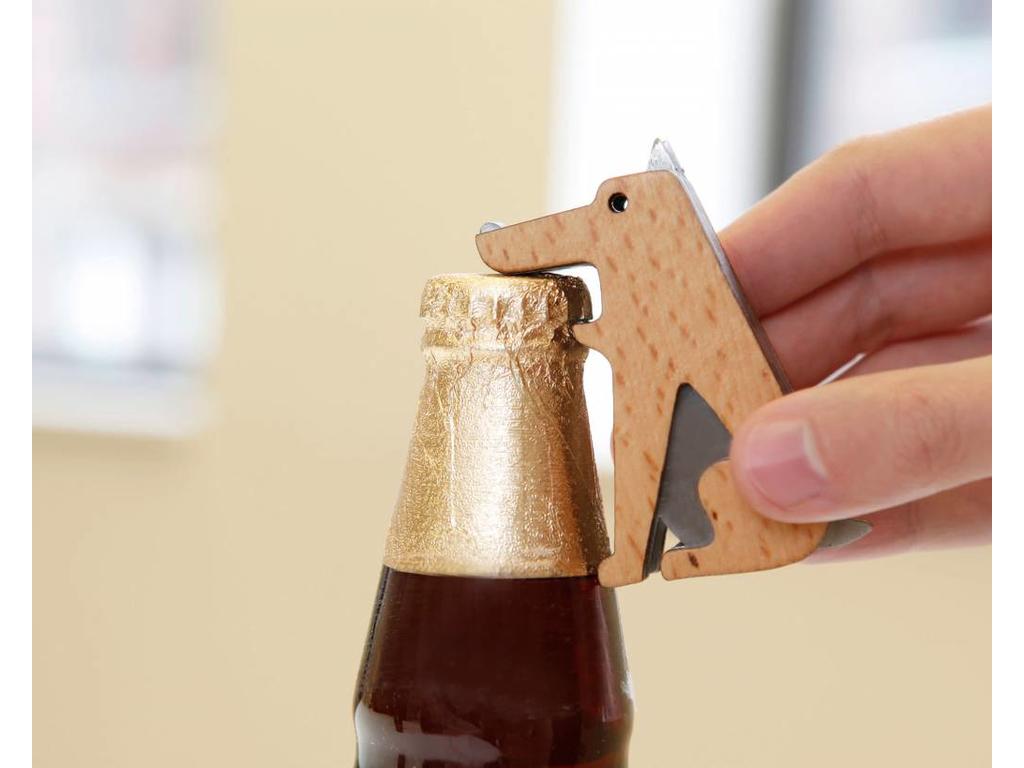"fetch!" dog bottle opener will be your best friend. he is very skilled at opening bottles with his mouth. just hook this good boy on a bottle top, and pop it off to enjoy a special treat from man's best friend.