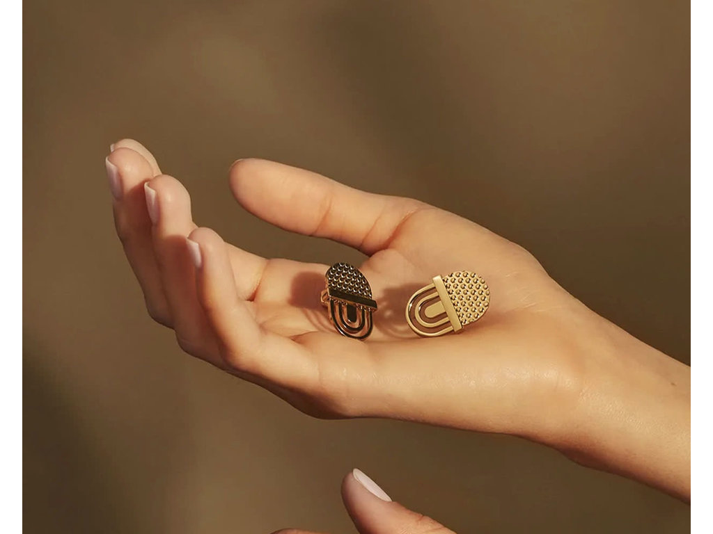Create an accountmaterial: two earrings in steel, coated with hypoallergen PVD gold
