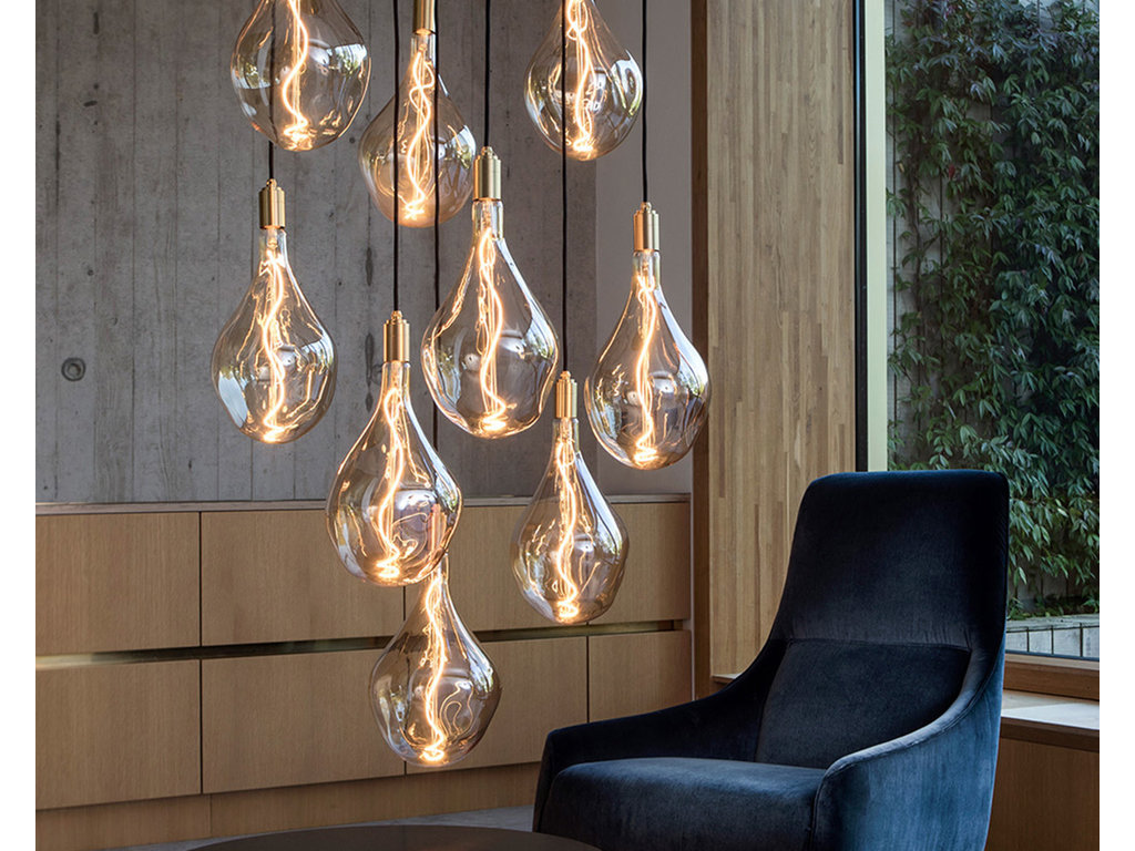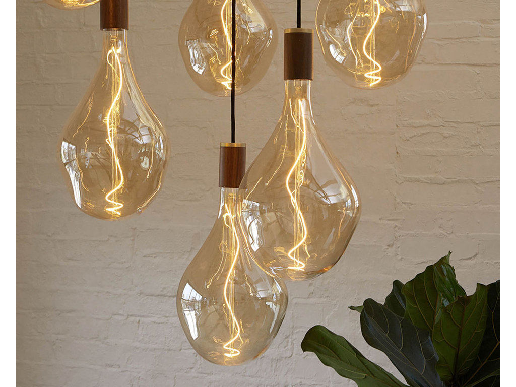 dimensions: 7.9 x 15.7 inches material: Brass cap, mouth-blown glass finish: Iron tinted Lumens: 220 Equivalent incandescent power: 22W |